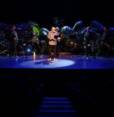 Texte et musique s’unissent pour raconter cette histoire : la musique, au service du texte, figure les personnages, et accompagne les situations de calme ou de tension : c’est un conte dans lequel musiciens et récitant entremêlent leurs voix, et où le texte et la musique sont en parfaite osmose...